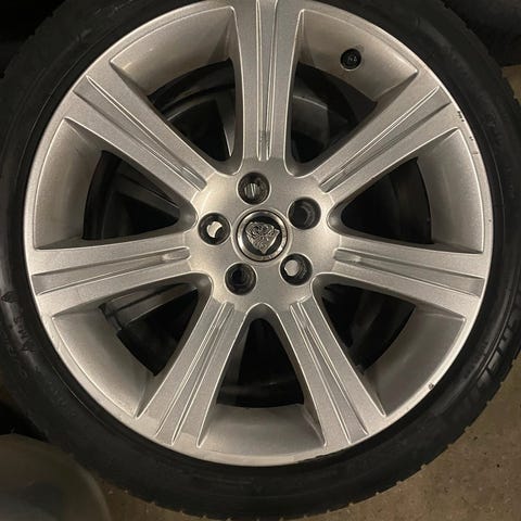 Et sæt Jaguar XF fælge. Kommer fra en model 2013. Passer også på andre modeller. Fælgene har lidt ikke noget vildt se billeder. Masser af mønster på dækkene. Skriv eller ring. Ref nr 113