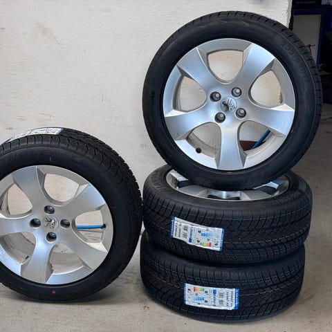 Ny vinterdæk med brugt Peugeot alufælge.