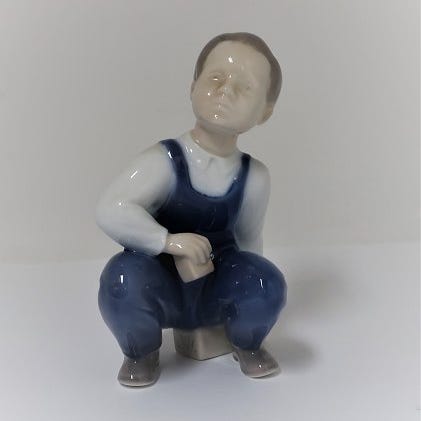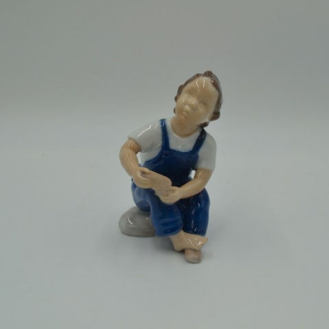 Bing & Grøndahl. Porcelænsfigur. Siddende dreng. Nr. 2402. Måler 12 cm. høj. 1. sort. Hel og fin stand. Pris 375kr.