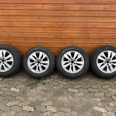 Flot sæt originale Peugeot alufælge med Michelin alpin vinterdæk str. 215/65/17 ca.90% mønster. Kan monteres på din bil efter aftale. Pris for hjulene er for 4 stk.