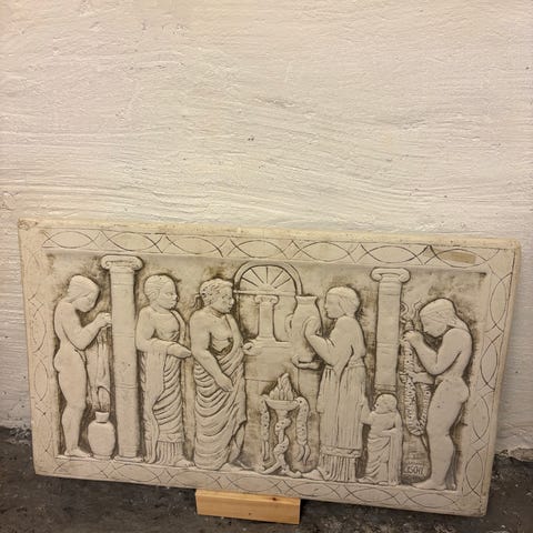 Smukt relief af Ludovisi tronen, venstre side. Originalen blev fundet i 1887 i Villa Ludovisis park i Rom. Man mener det stammer fra 460 år før vores tidsregning.