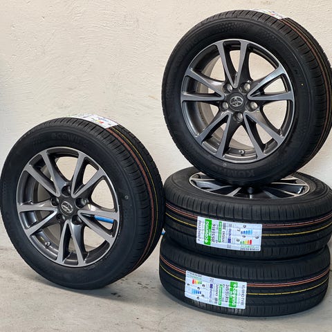 Ny vinterdæk med brugt originale Toyota stålfælge og kapsel.