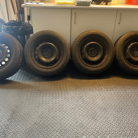 Ny vinterdæk med brugt stålfælge.