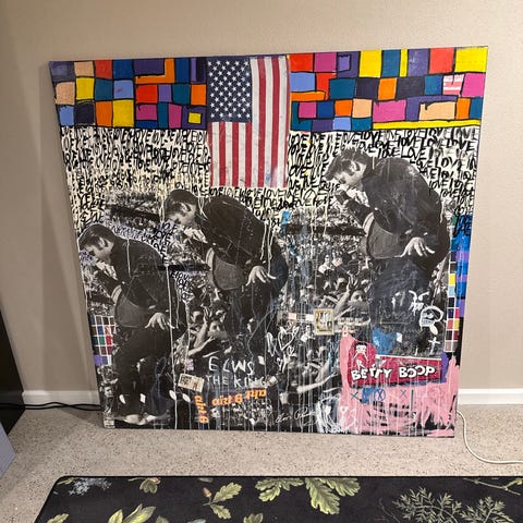 Jan Klein maleri. Skønt farverigt maleri i en god størrelse. Lidt utraditionelt maleri fra Jan Klein som ofte gør sig i motiver/personer mm.