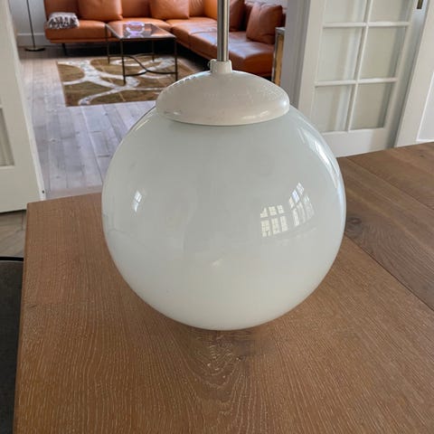 Lækker retro lampe med glaskuppel og rødt ophæng