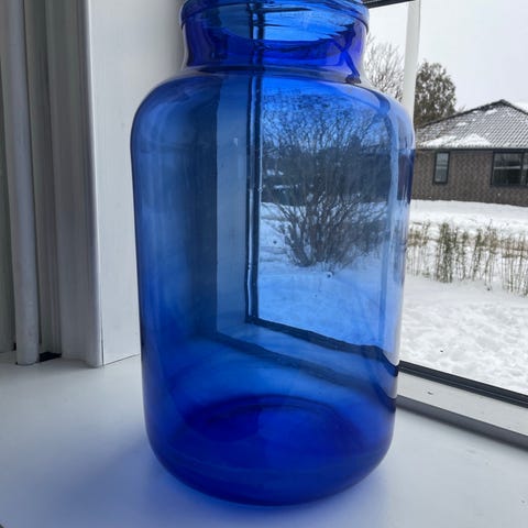 Håndlavet/mundblæst vase i smukt blåt glas.