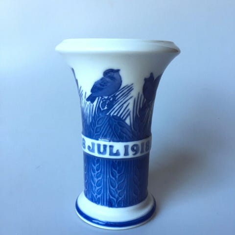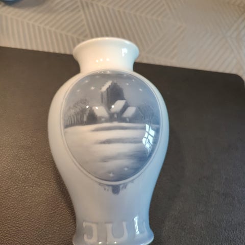 Kongelig Porcelæn lågvase. Jul 1917. Af porcelæn i underglasur. Højde 15 cm. 1. sortering. Nr. 109. I perfekt stand uden fejl. Fast pris.