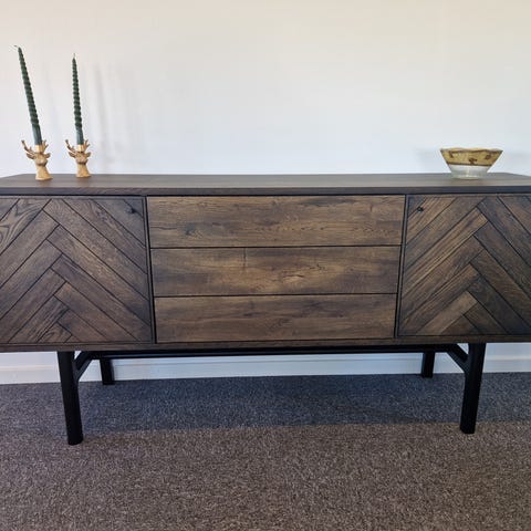 Denne smukke nye skænk, der fåes med trælåge, glaslåge, sildeben eller vævet bomuldslåge.