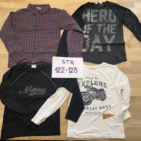 Skjorte, Bomuld, H&M og VRS , str. 122, Næsten som ny. Brugte x2 i kort tid. Mørkeblå. Fremstår vasket. Røgfrit hjem. Samlet pris.