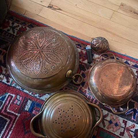 Kobbergryde m/låg, Kobber, 100 år gl., Lille kobbergryde med messing hank og