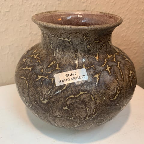 Funkis vase af glaseret lertøj, udgået fra Regina, Gouda i Holland. Nr. 438, Ispahan. Sandsynligvis designed af Steef Boers. Højde 27 cm. I fin stand, men med lille reparation på fod, som næsten ikke ses, se sidste foto.