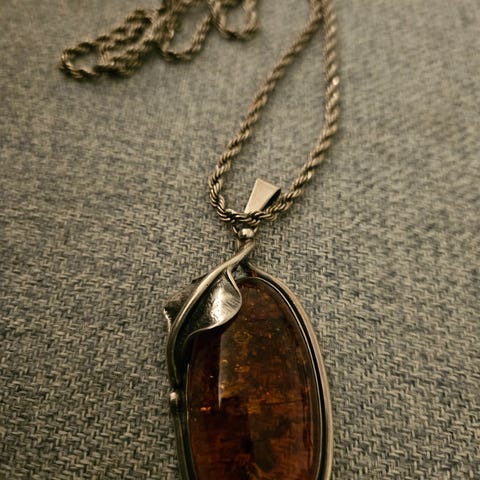 Rabinovich sølv halskæde med vedhæng isat citrin perle og røgkvarts