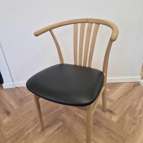Stolen er i delmassiv ubehandlet egetræ med sort PU læder.