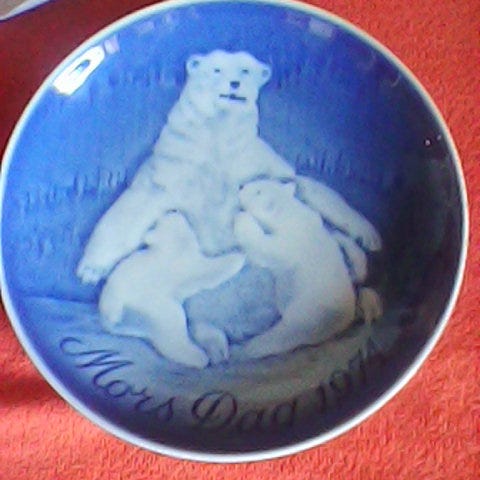 Bing & Grøndahl Mors dag platte 2012 " Isbjørn med unger". Måler 15cm i Diameter. Platten er designet af Allan Therkelsen. 1. sort. Hel og fin stand Pris 400kr.