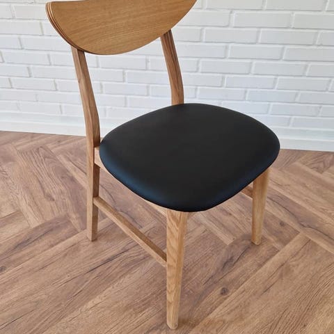 Stolen er udført i egetræ samt sort eller cognac ægte læder sæde.