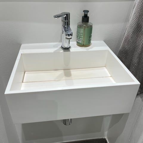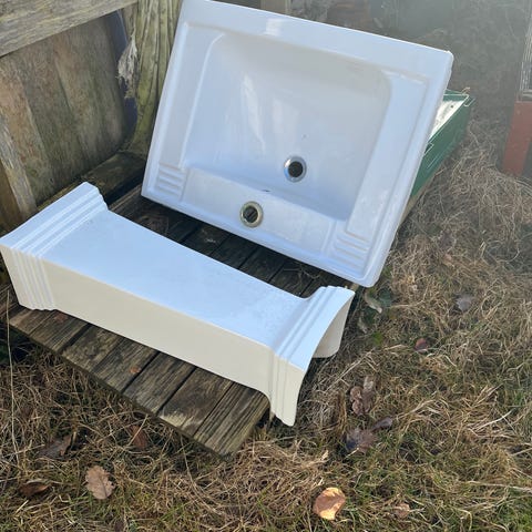 Kummehåndvask, Aflang kumme håndvask. Vasken er 100cm bred, 43cm dyb og 20 cm høj