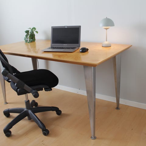 Udført i stilfuldt aluminiumsstel, med malet MDF-plade i dueblå.