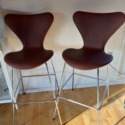 Ubrugt, 7ér barstol, lav eller høj model samme pris, ombetrukket af møbelpolstren.dk, produceret af Fritz Hansen.