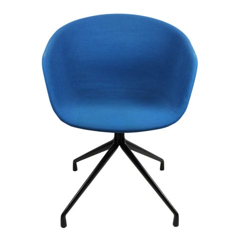 Sæde i cura dark green stof med genbrugsplast skal og ben i sort pulverlakeret stål
