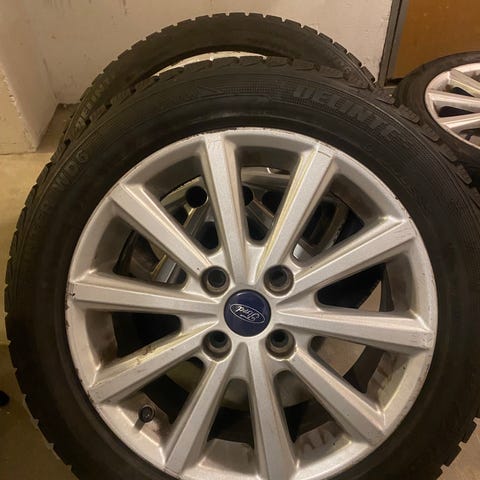 Et rigtig fint sæt et en Ford Fiesta. Masser af kilometer i dækkene endnu. Der medfølger 4 orignale Ford kapsler. Skriv eller ring