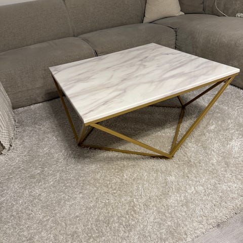 Luca hjørnebord, Bordet er i lys marmor og med stel i sort stål. Der findes også en større udgave, som er på en anden annonce.