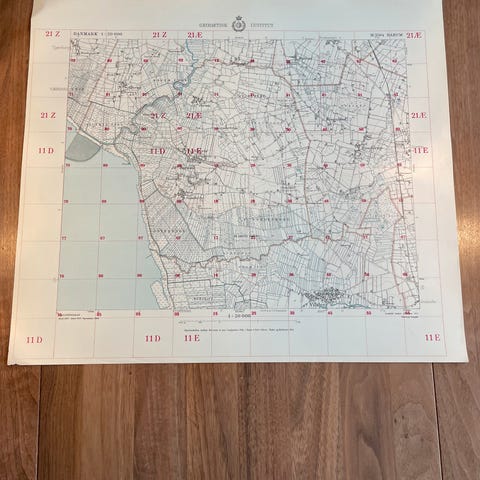 Vægkort fra 1951: Boeslum og omegn (perfekt stand)