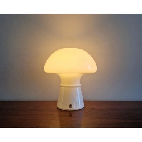 Fin mushroom lampe i opaline glas.