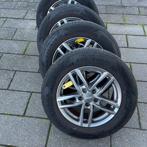 Et sæt passende til Audi Q3. Trænger til en hurtig rengøring. Dæk kan godt klare en sæson mere. Bemærk centerhul er 57,1.