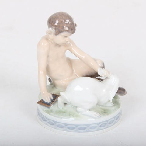 Royal Copenhagen, Faun med gedekid nr. 498, 13cm høj, 1.Sortering, Design Christian Thomsen Hel og fin stand Pris 1500kr.
