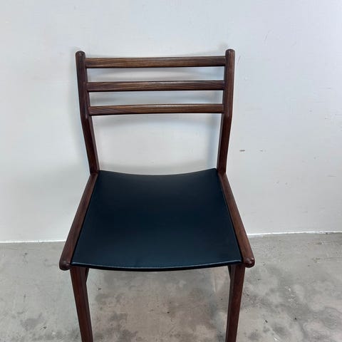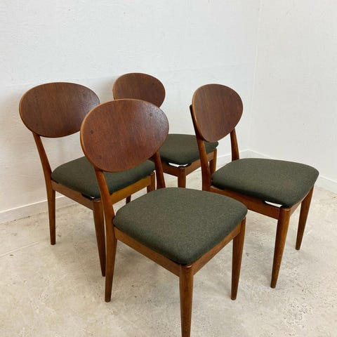 Spisebordstol med stel i patineret eg og med svungen ryg i teak , nypolstrert i hallingdal 65 - 600.