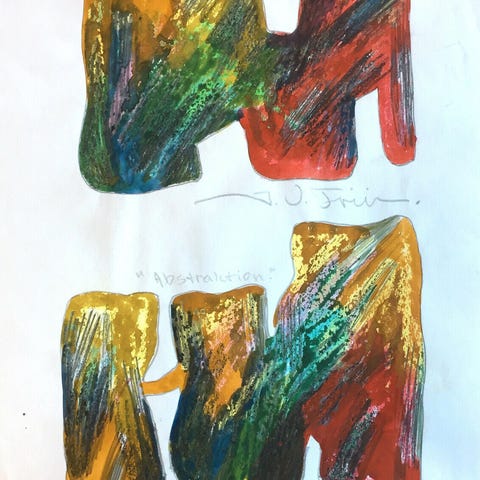 Komposition. Signeret og betitlet J. U. Friis, “Ocean”. Akvarel og blyant på papir. Med passepartout og sort ramme. Lysmål 29 x 39 cm (ramme 42 x 52 cm). (J52)
