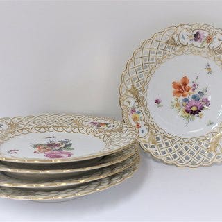 Royal Copenhagen Saksisk blomst 493-1885 Smørnæb 5 x 14 cm blomster motiver og med guldkant, hel og fin stand, Pænt i guldet Pris 595kr