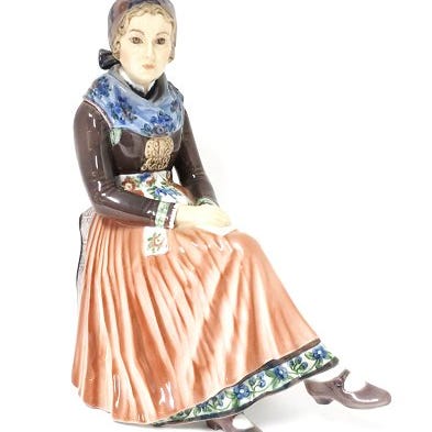 Dahl Jensen Amagerpige siddende , Højde 22,5cm. nr. 1110. 2.sort. hel og fin stand Pris 1900kr.