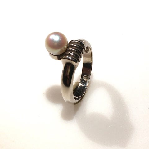 Ring af sterling sølv prydet med kulturperle. Perle diam. 6 mm. Stemplet 925S. Vægt 4,9 gr. Størrelse 52 / ø11,5.