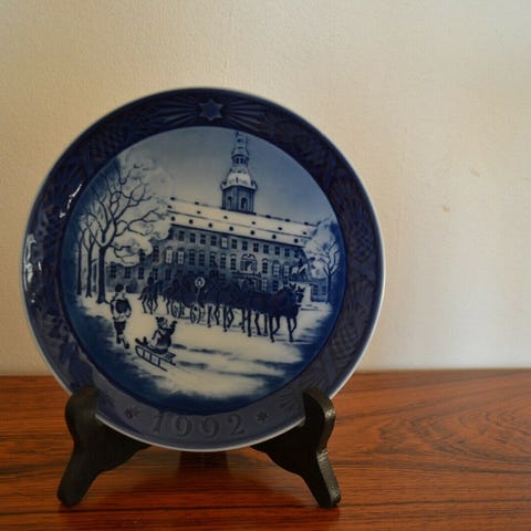 Royal Copenhagen/Kgl. Juleplatte, 1993, Julegæsterne ankommer, 18cm i diameter, 1. sort. Design af Sven Vestergaard Hel og fin stand Pris 395kr.