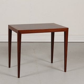 Dansk møbelarkitekt lampebord med stel i massiv palisander og fineret top .