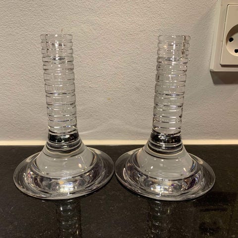 Maria Berntsen for Holmegaard. Et par Outline lysesteger. Signeret i bunden. H. 25 cm. I fin stand uden fejl. Sælges kun samlet.