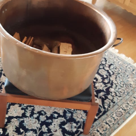 Kobberbrændespand,kobberkar,kobbergryde med låg fra 1800 tallet.