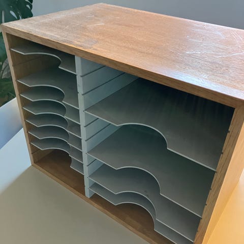 Reol/Dueslag i egetræ med 5 hylder.