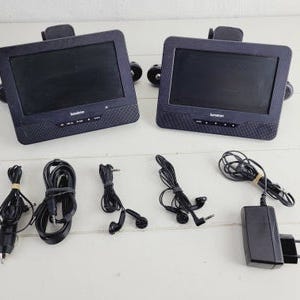 2 stk LCD skærme med indbygget mini dvd afspiller i den ene skærm - underholdning til de lange kørerture, til campingvognen eller børneværelset.
