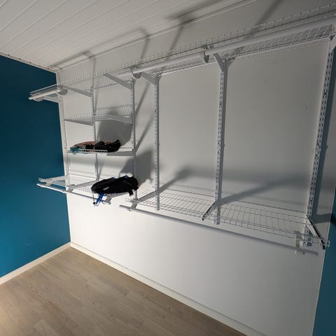 Med denne åbne garderobeløsning kan du nemt organisere dine tøjstænger, tøjhylder og skohylder efter dine præferencer. Du kan skabe en personlig og tilpasset opbevaringsløsning, der passer perfekt til dine behov og indretning.