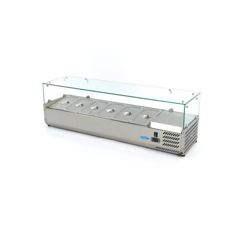 Dimensioner: B180 x D395 x H43,5cm og Strøm: 230V / 50Hz / 1Phase 200W: Med generøse dimensioner og effektiv strømforsyning er køleopsatsen designet til at imødekomme kravene i et travlt køkkenmiljø.