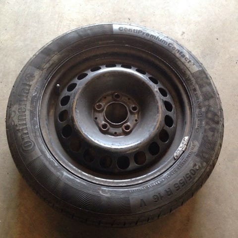 1STK Stålfælg, 16", 205 /65 /R16, krydsmål 5 x 120, ET 51, sommerdæk, Continental, 70% mønster