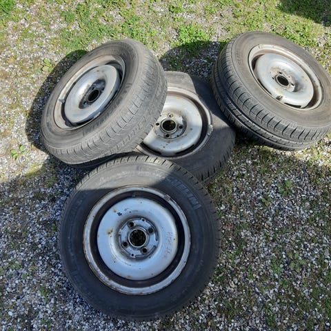 1STK Stålfælg, 14", 165 /75 /R14, krydsmål 5 x 100, ET 35, sommerdæk, Continental, 90% mønster,