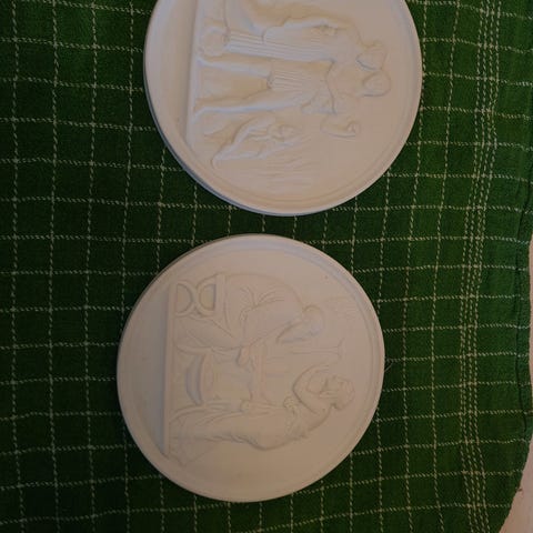 Bing & Grøndahl Thorvaldsen forår busquit platter fra serien årstider med topløs kvinde og 2 børn