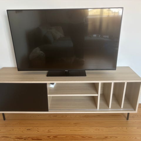 Tv-bordet er fremstillet af høj kvalitet materialer, der er designet til at holde op til daglig brug. Dets stabile konstruktion gør det muligt for dig at placere dit tv sikkert på toppen, så du kan nyde dit foretrukne indhold uden bekymringer.