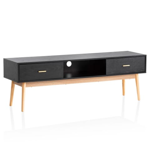 Sort TV-bord med 2 skuffer i egetræ (gratis levering)