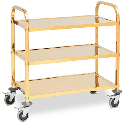 Med tre rummelige hylder, hver måler 79 x 44 cm og med en afstand på 250 mm mellem dem, giver denne serveringsvogn rigelig plads til at arrangere og præsentere dine serveringsvarer på en overskuelig og tiltalende måde.