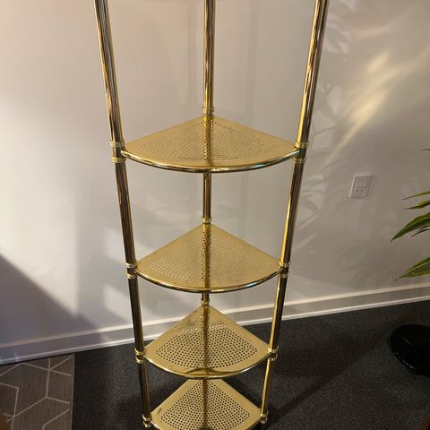 Guldfarvet hjørnereol med glashylder (gratis levering)
