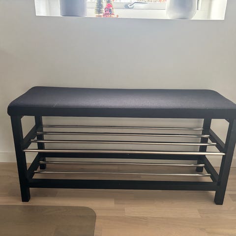 Denne skobænk forener industrielt stel og varme trætoner i et moderne og praktisk design. Det dekorative sildebensmønster på toppen tilfører et eksklusivt touch. Den åbne hylde skaber let adgang til sko, kurve eller opbevaringskasser – perfekt til entréen eller bryggerset. Det sorte metalstel giver bænken et robust udtryk og sikrer høj stabilitet ved daglig brug.